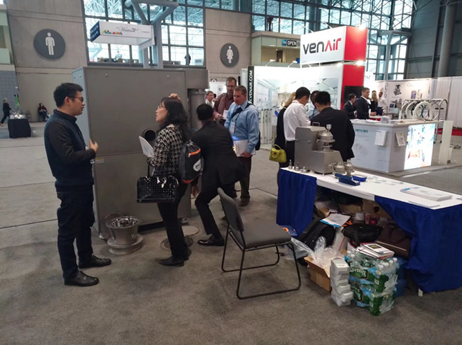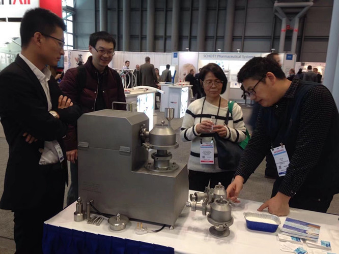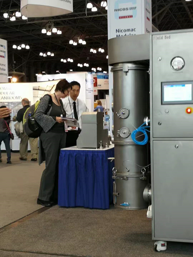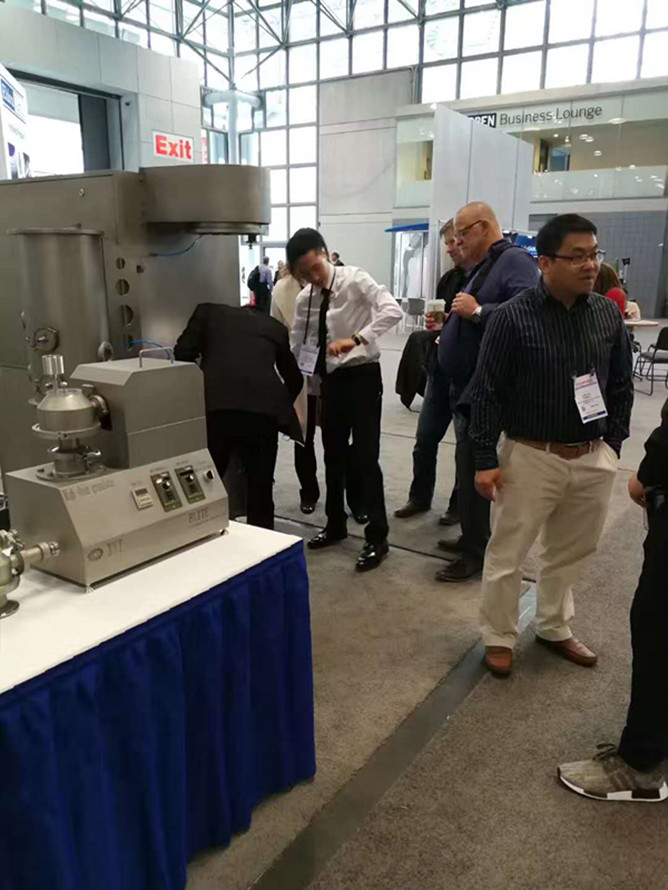 Interphex 2018在2018年4月17日~19日如期在紐約Javits中心舉行,深圳市信宜科技有限公司攜公司明星產品——流化制粒包衣機、高速濕法混合制粒機、擠出滾圓機(集擠出、滾圓、干燥、包衣于一體)、高效包衣機等參加此次展覽會,與國際制藥工業(yè)企業(yè)進行面對面的溝通和交流。我們獨特的設備吸引了不少制藥同行的駐足與觀望,現(xiàn)場的工作人員分別為他們演示與講解。